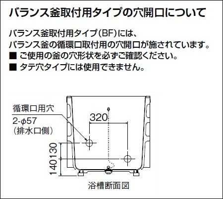 バランス釜専用穴あけ済(穴の位置は2つめの図面参照)