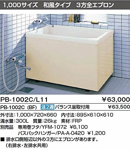 INAX ポリ浴槽 【PB-1002C(BF)】 バランス釜取付用(穴あけ済) (右/左排水共用) ポリエック 1,000サイズ 和風タイプ 3方全エプロン