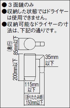 ●3面鏡のみ●収納した状態ではドライヤーは使用できません。