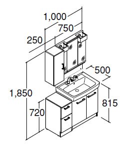 セット寸法:1,000×500×1,850mm