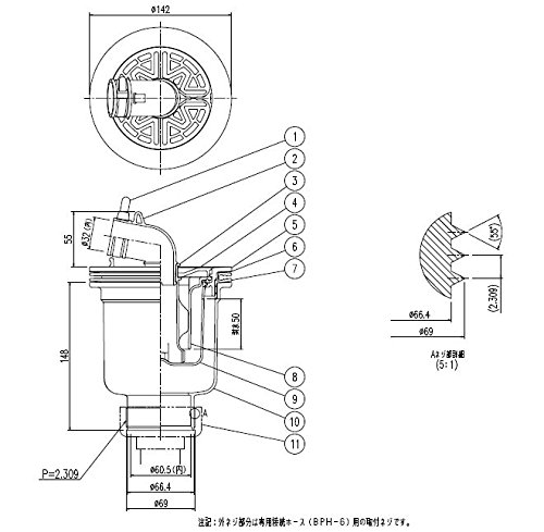 LIXIL(リクシル)INAX 洗濯機パン 排水トラップ TP-51
