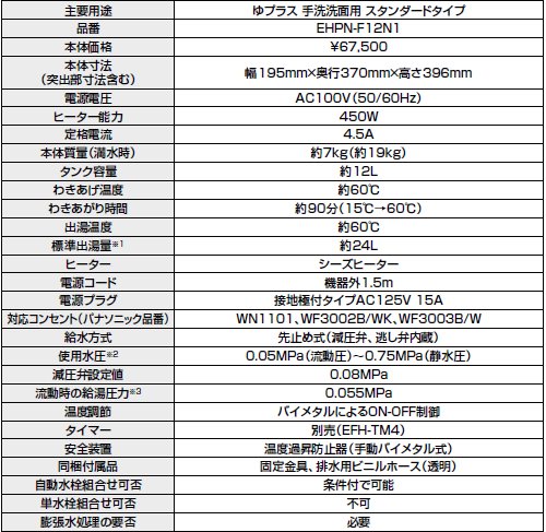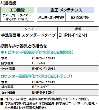 セット品番【EHPK-F12N1】(本体【EHPN-F12N1】+排水器具【EFH-4K】)