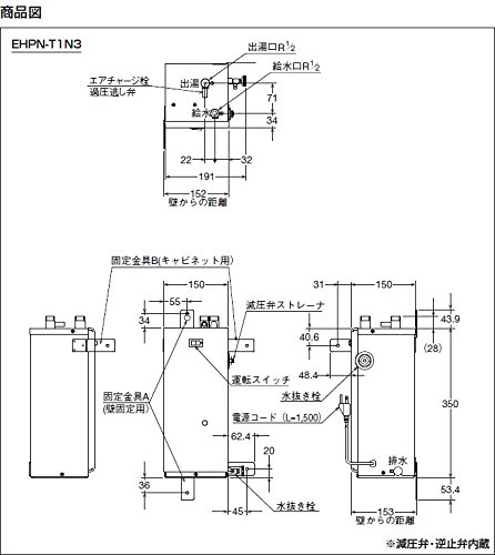 ●同梱付属品:固定金具、排水用ビニールホース(透明)