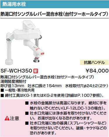 INAX・LIXIL 【SF-WCH350】 電気温水器専用水栓金具 熱湯用水栓 熱湯口付シングルレバー混合水栓(台付ツーホールタイプ)