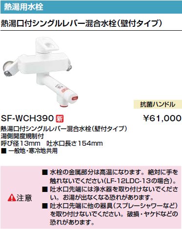 INAX・LIXIL 【SF-WCH390】 電気温水器専用水栓金具 熱湯用水栓 熱湯口付シングルレバー混合水栓(壁付タイプ)