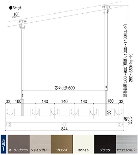 LIXIL(リクシル) テラス用 吊り下げ物干しBセット PTAP122 ワイド本体 ロング長さ エクステリア物干し ワイド本体844mm 調整範囲 H=1000mmから1400mm 1セット2本入り 仕 様/本体844mm 調整範囲 H=1000mmから1400mm カラー//オータムブラウン、シャイングレー、ブロンズ、ホワイト、ブラック、ナチュラルシルバー 材 質/アルミ押出形材他 備 考 アルミテラス取付用です。 その他に取付ける場合は躯体にあったビスを別途手配してください。 同タイプのテラス用吊下げ型竿掛け物干しで ワイド本体844mm ショート H=250mmから350mm ワイド本体844mm 標準 H=500mmから900mm ワイド本体844mm ロング H=1000mmから1400mm の3種類あります。この商品は1セット2本入りです。必要セット数でご注文ください。 本体のみで、物干し竿は含まれせん。 ●モニターにより、色も見え方が実際の商品と異なる場合があります。 ●注文が集中した場合など、発送が遅れたり、在庫切れで販売できなくなる可能性がございます