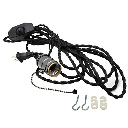 LJY 15ft/4.5m Vintage Extension Hanging Lantern Twisted Textile Cord with E26/E27 Base Socket & Dimmer Switch, 2-Prong US AC Power Plug for Pendant Lighting [並行輸入品]