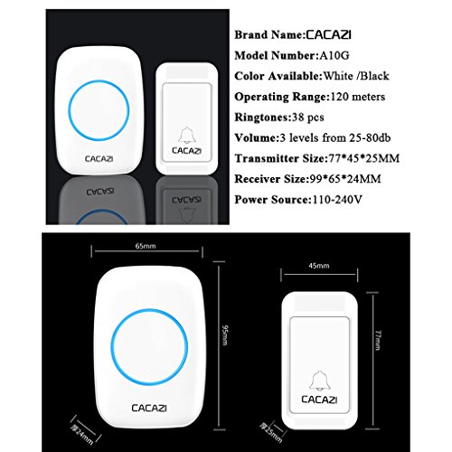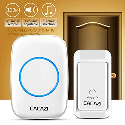 ワイヤレスチャイム LORIA・JP ドアベル インターホン 呼び出しチャイム 120M無線範囲 配線不要 電池不要 防水 送信機1個 受信機1個 ホワイト