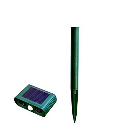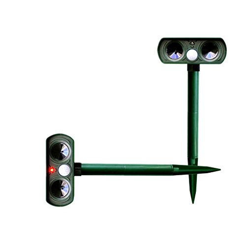 - 人の健康を脅かす化学成分はなく、パッシブ赤外線センサー(PIR)は動きを検出し、人々が聞くことができないが一般的な屋外害虫を追い払う音を出す。