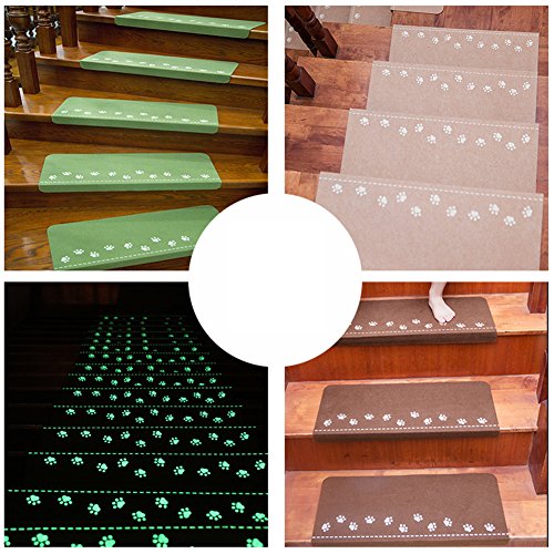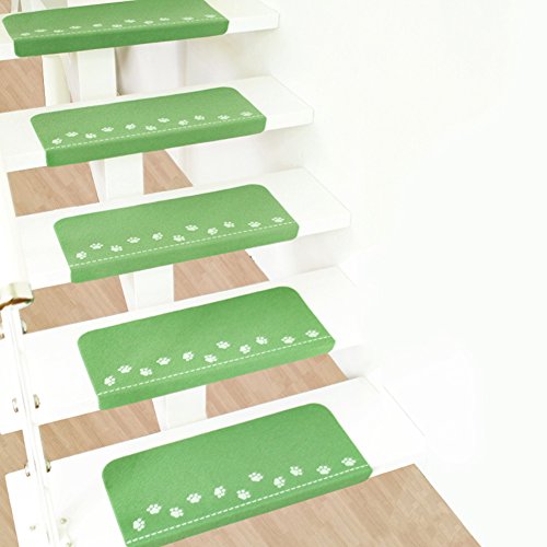LoveHome Pawパターン夜間ライト光カーペット階段踏み板マット – 耐久性、ミュート、ノンスリップ保護 – 2個 グリーン mat-18