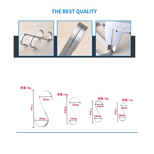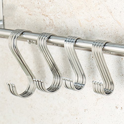 20個多目的ツールフラットS型フック304ステンレススチールメタルキッチンポットパンハンガーストレージハンギングラック – S、M、L、XL