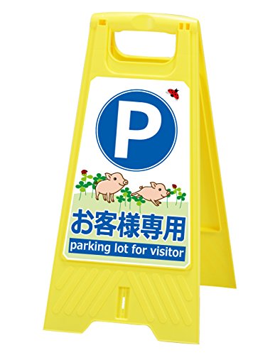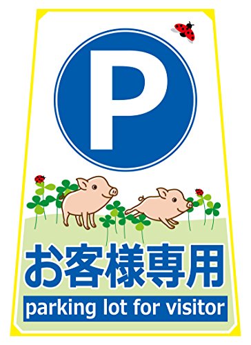 - とってもかわいい子ぶたの「駐車場案内」看板です。イラストと鮮やかな蛍光カラーが人目を引きます。