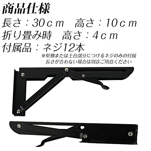 LUCINA 折り畳み式 L字 棚受け金具 2本セット 高耐重量だからテーブルにも出来る! (30×15cm, ブラック)
