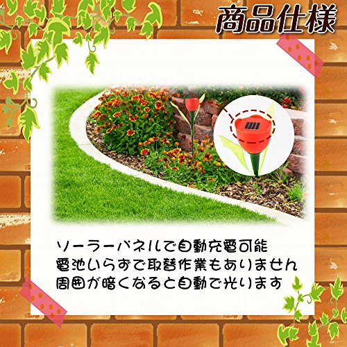 LUCINA バラ型 ソーラーガーデンライト 2個セット 暗くなると自動点灯 (レッド)
