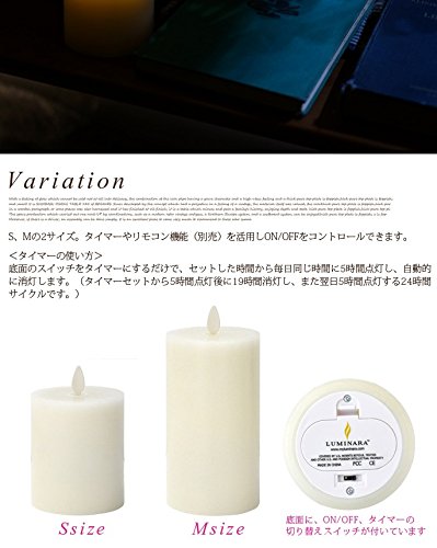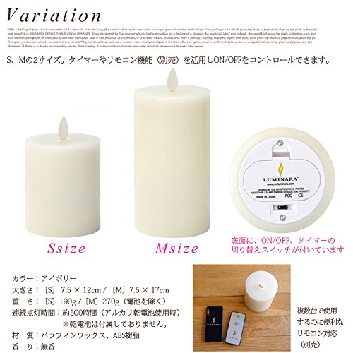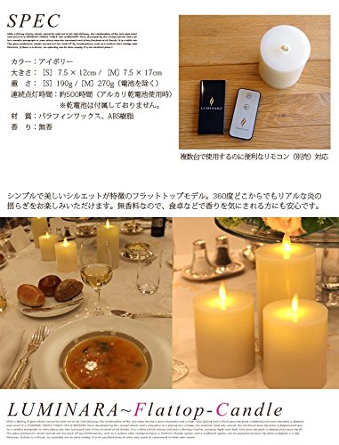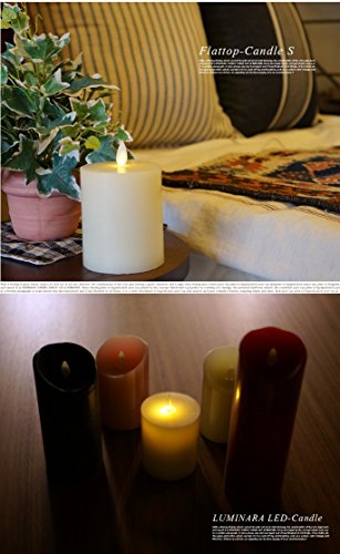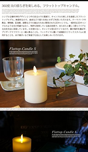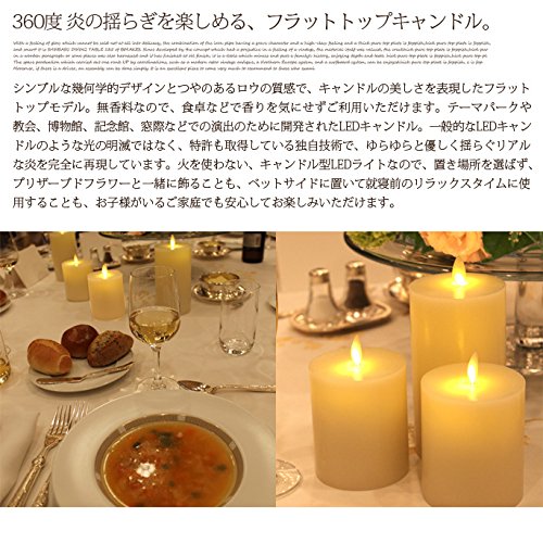 【LEDキャンドル フラットトップキャンドル】シリーズは、特許技術を使ったリアルなゆらぎと、リアルな質感にこだわったLEDキャンドルです。火を使わないLEDキャンドルなので安心してご使用いただけます。省エネ技術の向上により、単2形乾電池2本使用で、連続点灯が約500時間可能となりました。電池交換で繰り返しご使用いただけますので経済的です。無香料なので、お食事シーンにも気軽にご使用いただけます。複数台で使用するのに便利なリモコン対応(別売)なので、一括操作にも役立ちます。タイマー機能搭載で、1度タイマーをセットしておけば、毎日同じ時間に自動点灯し、5時間後に自動消灯してくれますので、消し忘れの心配もありません。