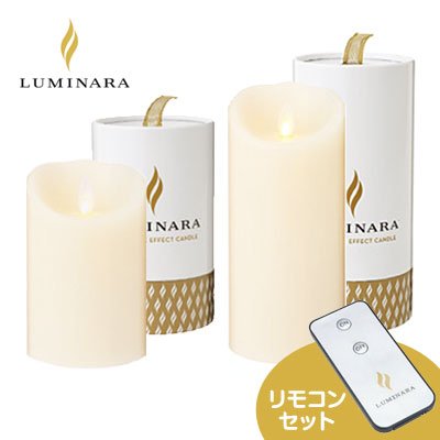 LUMINARA LEDキャンドル ピラー スリムタイプ ギフトボックス入り kameyama アイボリー Sサイズ+Mサイズ+リモコンセット B03070010BIV-3SET