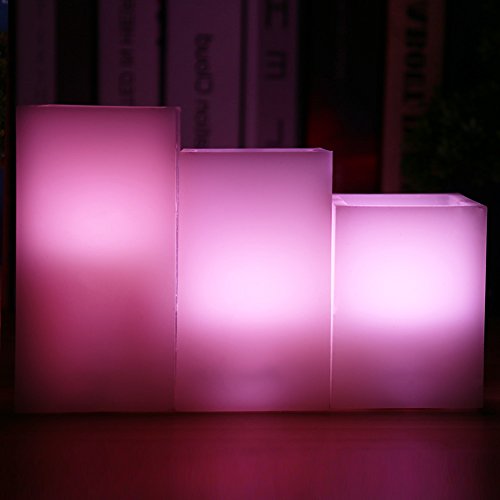 【在庫一掃セール】LUNSY LEDキャンドルライト角型 3個セット リモコン付き S/M/Lサイズ×各1 本物の蝋(ワックス)使用 多色 マルチカラー 12色
