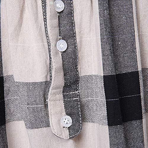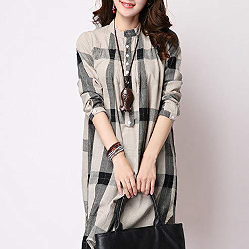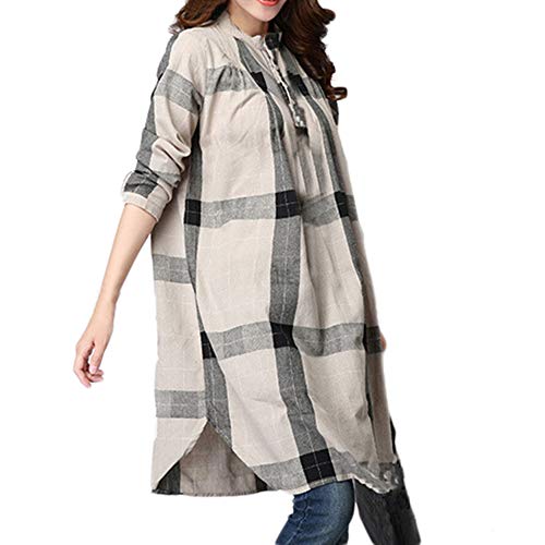 LZE格子 大きなサイズ 綿とリネン ロングスリーブ シャツ レディース Tシャツ ロング丈 ボタン 不規則 女性 洋服 上着 日常着 大人 おしゃれ 体型カバ― お呼ばれ 通勤 日常 快適 20代30代40代でも