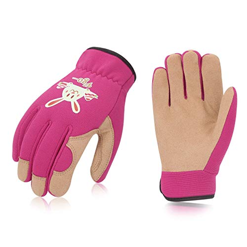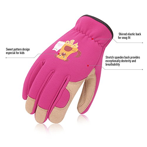 Vgoキッズグローブ 子供用手袋 作業 園芸 掃除 アウトドア 多目的 春秋用 1双入(Color: Red,Size:Kid:M,年齢:5-6歳)