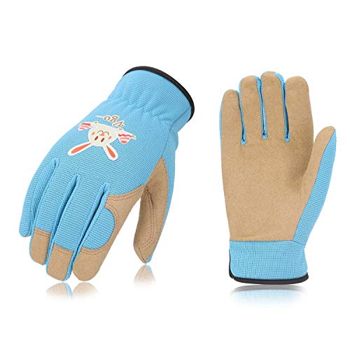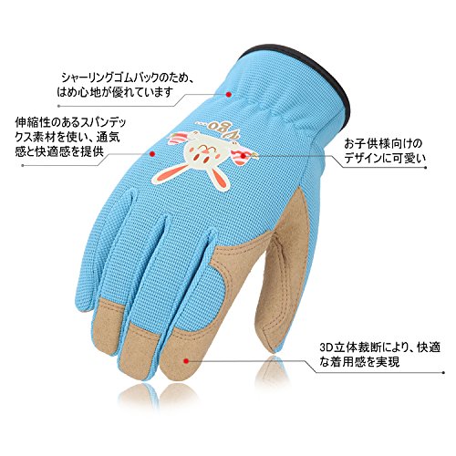 Vgoキッズグローブ 子供用手袋 作業 園芸 掃除 アウトドア 多目的 春秋用 1双入(Color: Blue,Size:Kid:M,年齢:5-6歳)