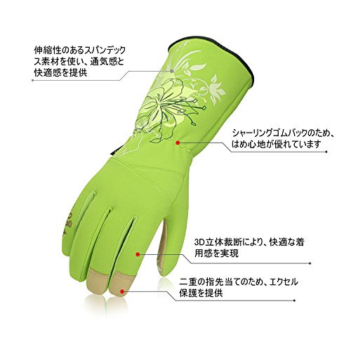 Vgo.ガーデニンググローブ 園芸作業手袋 女性用 1双入(Green Color,Size:L)