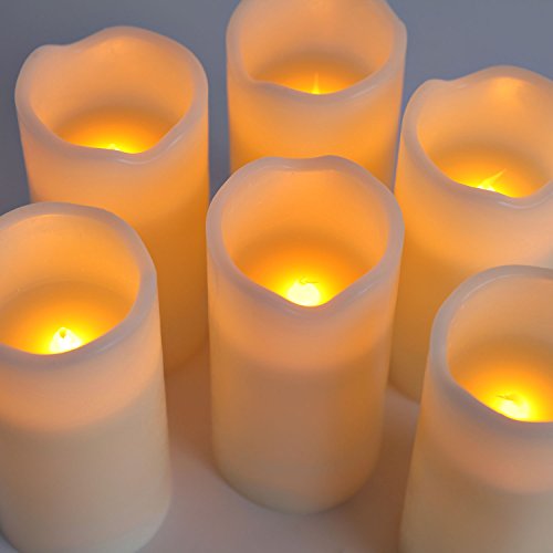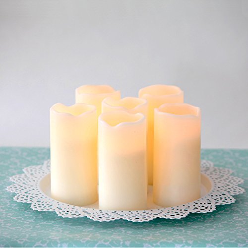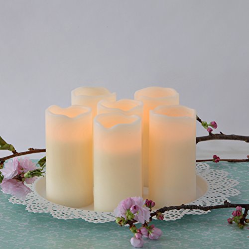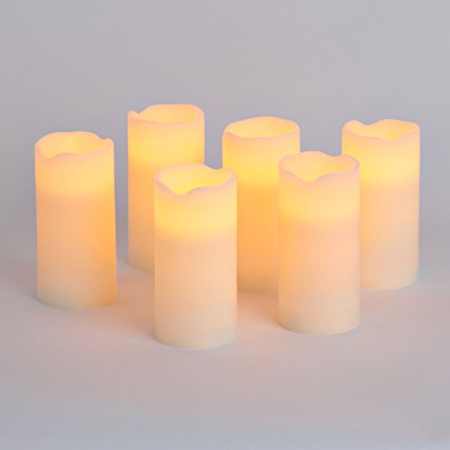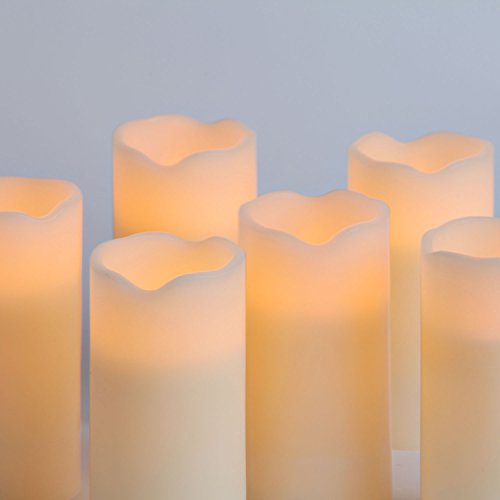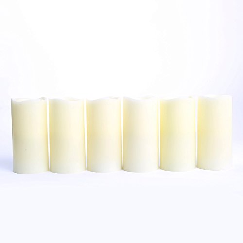 6アイボリーFlamelessピラーキャンドルwith Meltedエッジ、6、「WarmホワイトLED、リモート&電池含ま