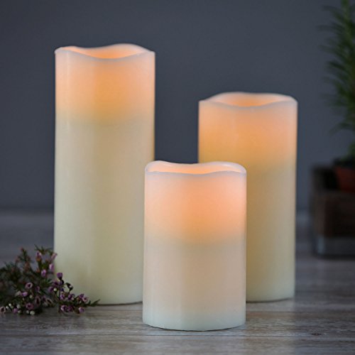 3 Large Meltedエッジ、滑らかなフレイムレスキャンドルアイボリーワックス、さまざまなセット、電池&リモート含ま