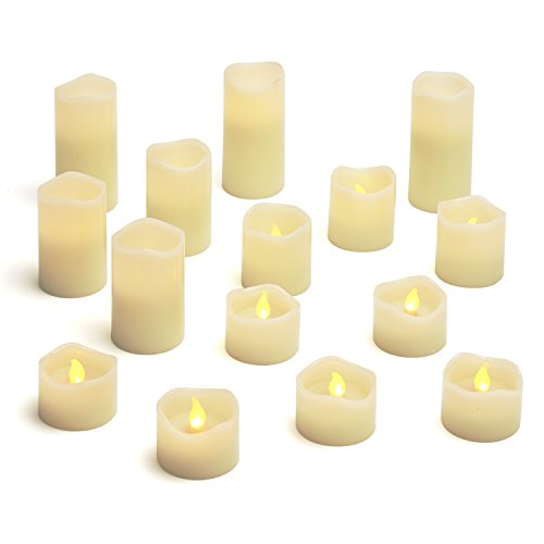 15 Flamelessアイボリーワックスキャンドルwith WarmホワイトLED、Meltedエッジ、自動タイマー、Varietyパック、すべての電池含ま