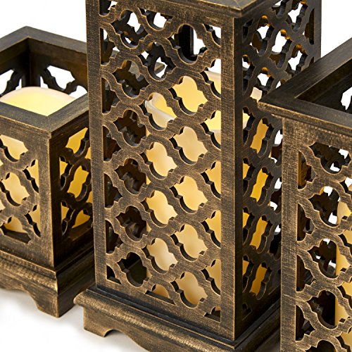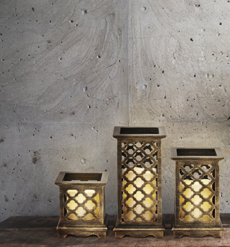 - 説明:各3セットブロンズ1アイボリー樹脂Candle付き木製ラティスデザイン提灯で。各キャンドルには1つの明るいウォームホワイトLED。