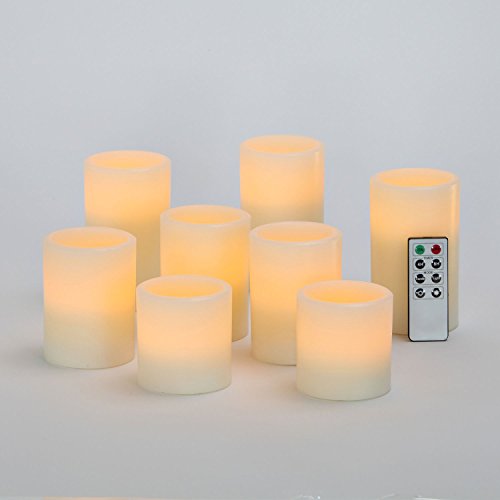 - REMOTE: Power your candles using our included 8 function remote. Functions include: ON/OFF, 4Hr/8Hr Timer, Steady On/Soft Glow, Bright/Dim. The variety of functions allow these candles to be personalized to your preference.