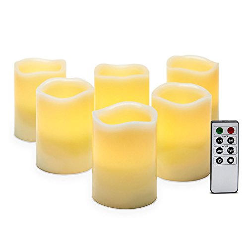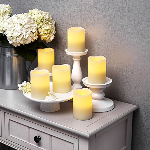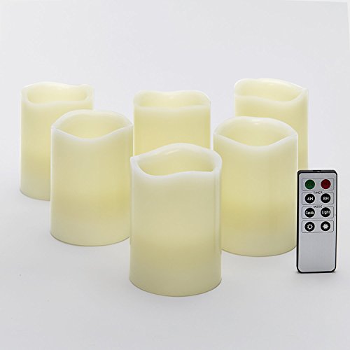 Set of 6 Ivory Melted Edge 4" Flameless Wax Pillar Candles with Remote [並行輸入品]