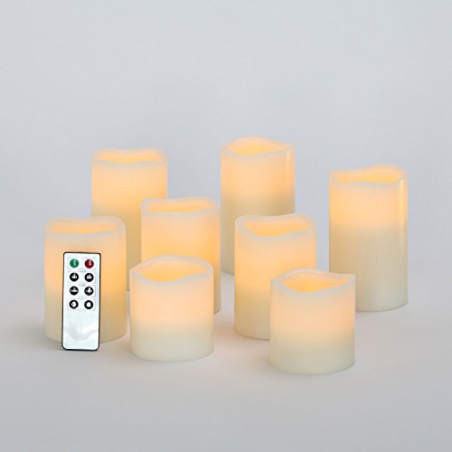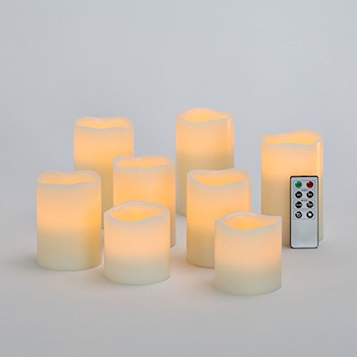 - REMOTE: Power your candles using our included 8 function remote.Functions include: ON/OFF, 4Hr/8Hr Timer, Steady On/Soft Glow, Bright/Dim. The variety of functions allow these candles to be personalized for your preference.