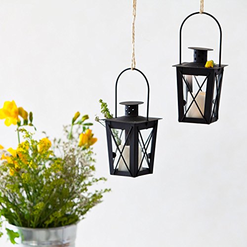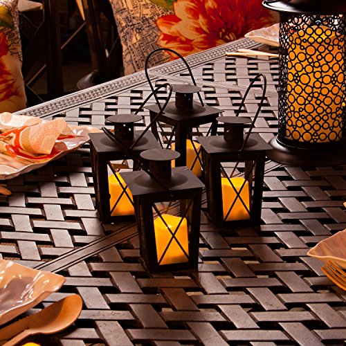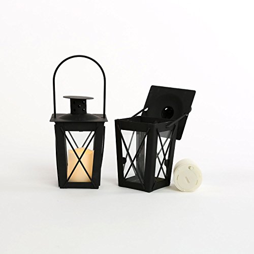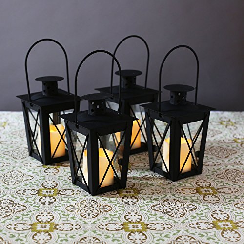 Set of 4 Black Powder Coated Mini Crossbar Lanterns with Votives and Remote [並行輸入品]