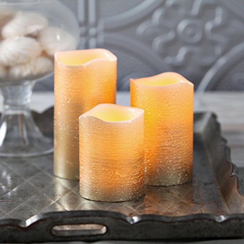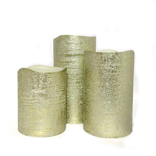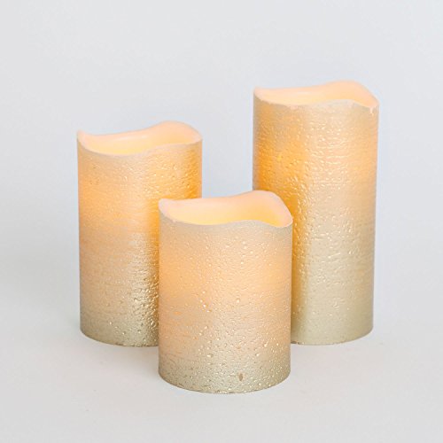 Set of 3 Gold Wax Flameless Battery Candles with Timer and Remote [並行輸入品]