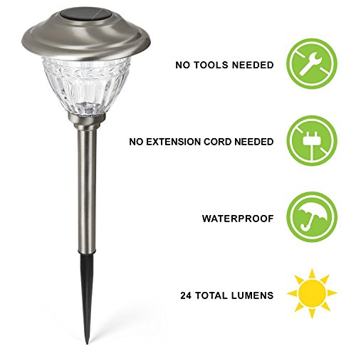 Set of 6 High Quality Water Resistant Solar Stainless Steel Path Lights with Warm White LEDs and Garden Stakes [並行輸入品]