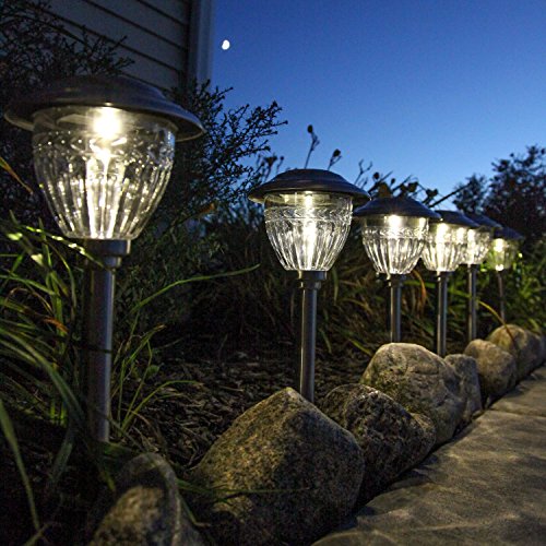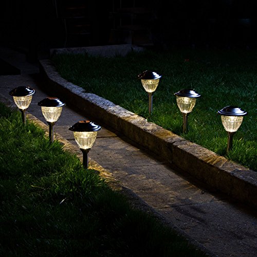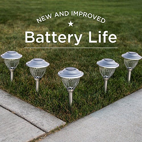 - Includes 6 Solar Path lights, 6 Garden Stakes, 6 Solar Panels, and 6 Rechargeable Batteries.