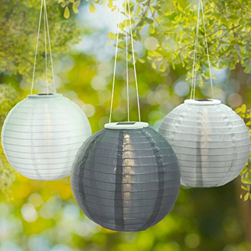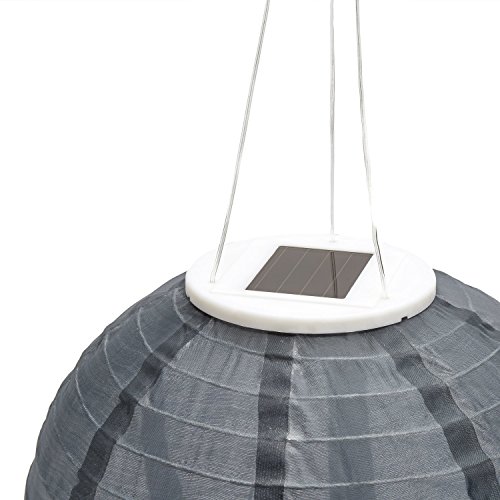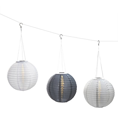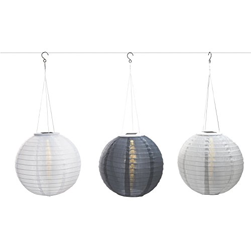 - Set of three (Cream, Light Grey, and Slate) Oriental nylon solar lanterns with hanging hook included