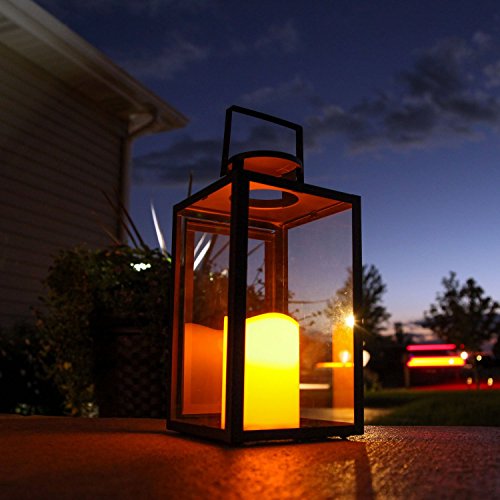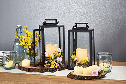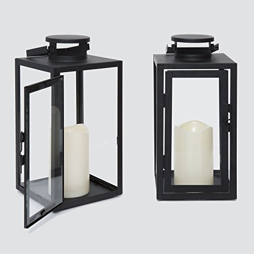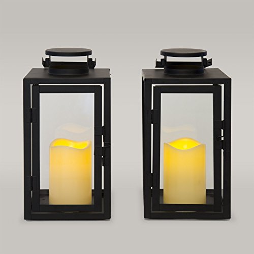 Set of 2 Tall Glass Paneled 11" Black Metal Flameless Lantern with 5-Hour Timers (Batteries Included) [並行輸入品]