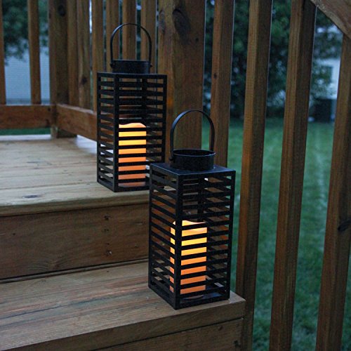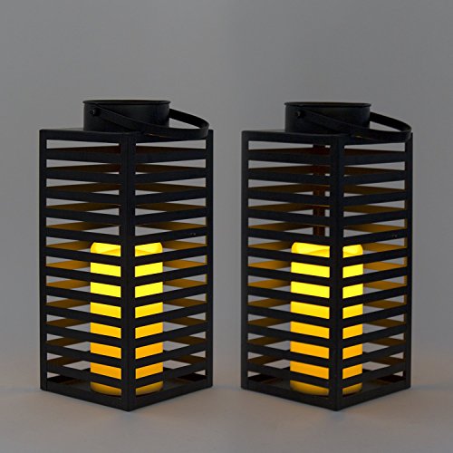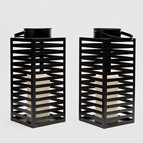 Set of 2 Black Metal Slat 12" Warm White Flameless Lantern with Timer (Batteries Included) [並行輸入品]
