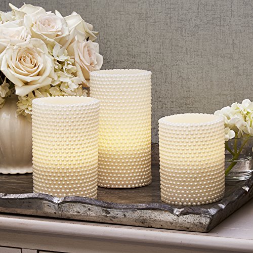 3セットパールの完了ワックスキャンドルリプルテクスチャデザインと暖白色グロー。スタイリッシュなホームデコレーションとして使用するか、周囲のムード照明、でこれらのキャンドルに追加された印象またホリデークリスマス小道具として、またはプレゼントにもなり – アプリケーションは無限にあり。