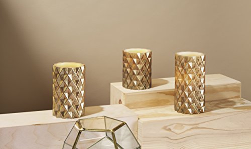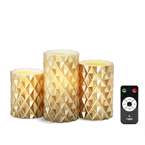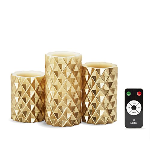 Set of 3幾何ワックスピラーキャンドル、リモート含ま、電池付属 LC003692