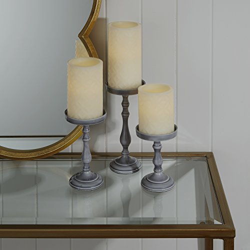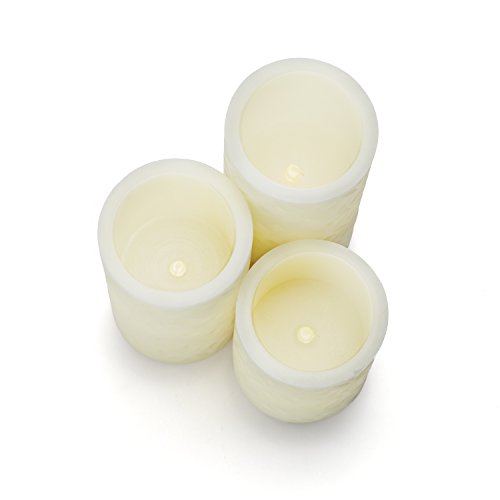 ワックスピラーキャンドル3本セット アイボリー色彫刻風 リモコンと電池付き LC003694