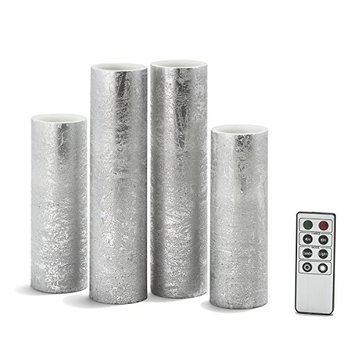セットの4 TexturedスリムワックスFlamelessピラーキャンドル、8関数リモート、電池付属 LC003702