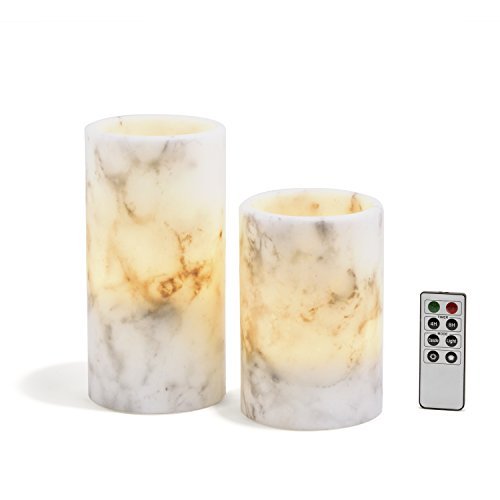 多機能機能3コンテンポラリー、ワックスmarble-patternedフレイムレスキャンドル暖色系」のホワイト光彩。このキャンドルのセットは、強化するためのマントルのテーブルトップのサーフェスまたは追加のディスプレイが搭載されている。クリスマス、もできます。これらのキャンドルは、プレゼントや装飾アクセサリーホリデーシーズン中。