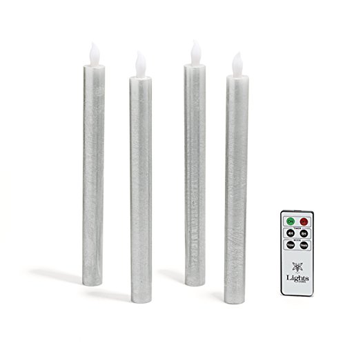 Flameless LEDテーパキャンドル、10インチ、テクスチャワックス仕上げ、push-activated、リモート&電池付属 – 4のセット 10" LC003946