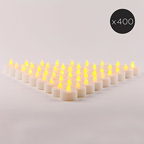 Flameless無香電池式ティーライトとリアルなちらつきオレンジLED ‐電池含ま Set of 400 ホワイト LC004105