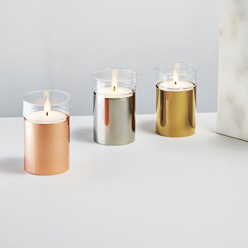 - ユニークな – この小説と注がれる洗練されたデザインはバッテリーワックスキャンドルガラスハリケーントップでの光沢のある,メタリック容器とコンテンポラリー、ゴールド仕上げ。{サイズ: 3 " D x 5 " H }を有効にします。