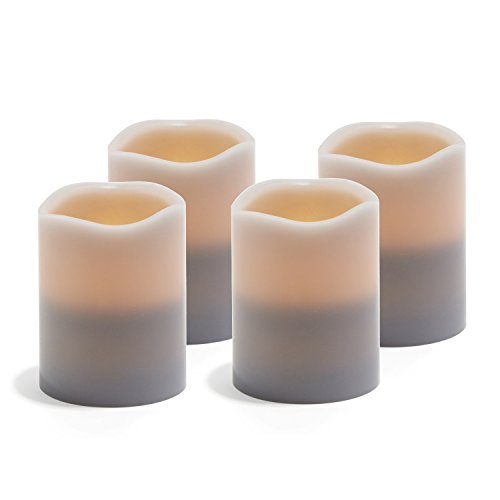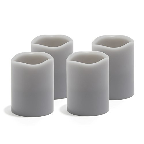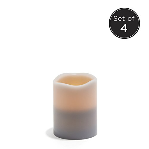 Flameless Waxピラーキャンドルwithリモート|のセット4 3x4 グレー LC004621