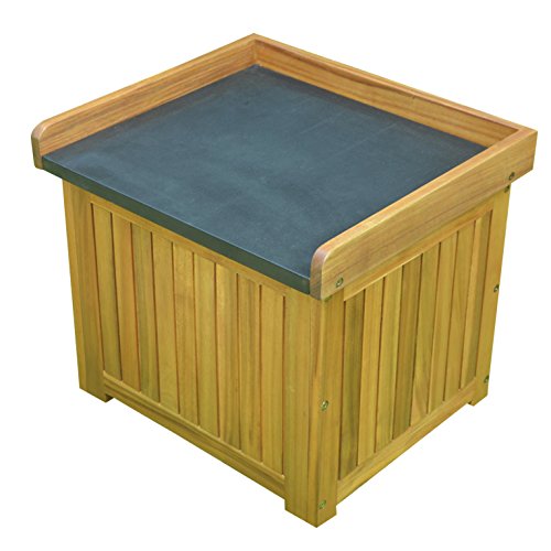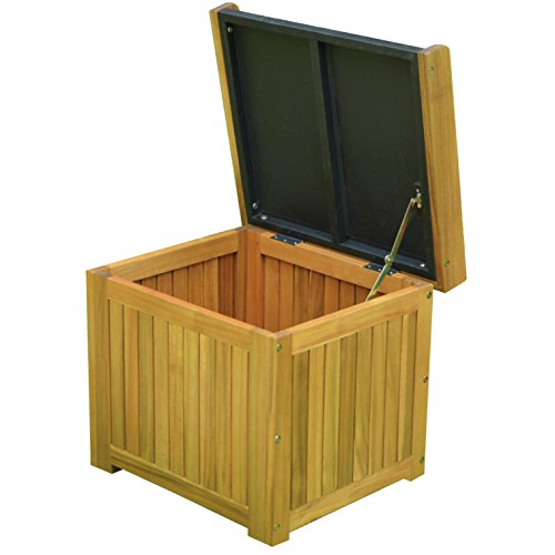 ソリッド木製ストレージデッキボックス( )ブラックパウダーコーティングスチールTop with Natural Oiledカラー仕上げ。天気抵抗アセンブリ、必要です。19.69 " H x 22.64 " W x 19.69 " D