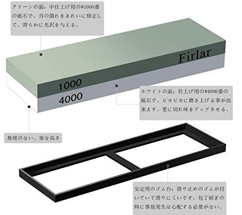 Langba 両面砥石 包丁研ぎ石 10004000 プロ 家庭用 砥石 仕上げ 中砥石 包丁研ぎ器 ステンレス・鋼両用 ゴム台付き 研磨工具